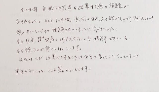 本も以前よりは何度も繰り返さなくても理解できている。本を読むのが楽しくなっています。